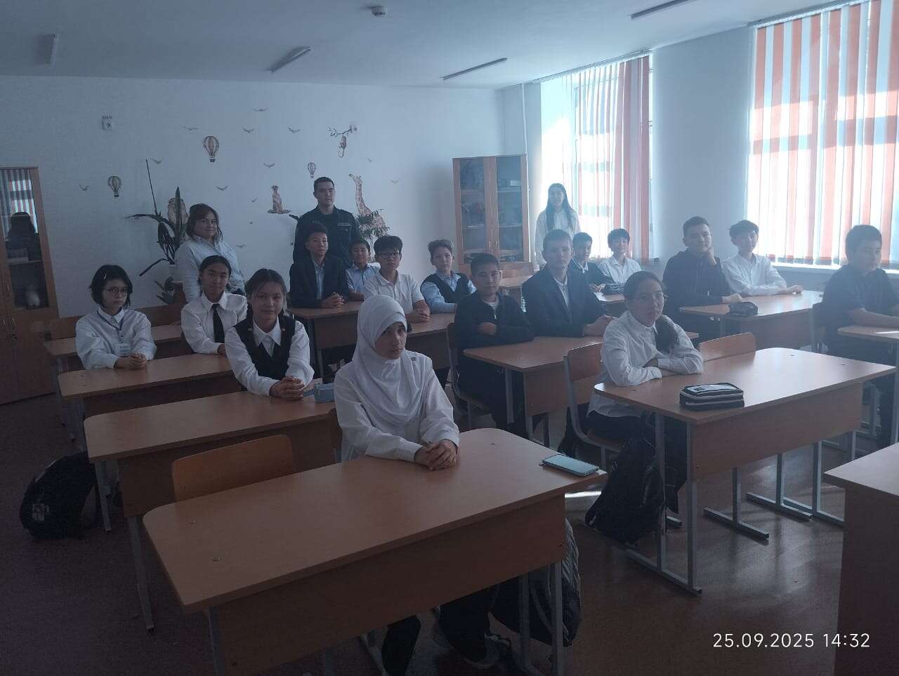 2025 жылдың 25 қыркүйегі күні Оңтүстік бөлімшенің полиция инспекторы 7 «В» ,10 “С” сынып оқушыларымен кездесу өткізді.