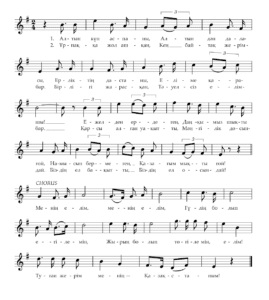 Музыка — композитора Шамши Калдаякова, слова — Жумекена Нажимеденова и Нурсултана Назарбаева.